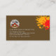 Overleaf, in a dark brown cover with yellow and red paint splatters, card details are over on the left. At the top is an "electric saw-rooftop" logo you can use. After this comes the business name, its contact details and a slogan caption which you can change.