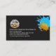 Overleaf, in a dark grey cover, card details are over on the left with an "electric saw-rooftop" logo you can use placed at the top. After this comes the business name, its contact details and a slogan caption which you can change.