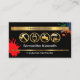 Design features a black cover that has paint splatters. It is accentuated by a pair of faux gold line layers. Over at the top is the contact details inside the gold layer with a gold handyman tool icons logo you can use, just underneath. This is followed by your prestigious name and the job title.