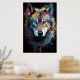 Paint splattered wolf print. A unique ai generated artwork refined and enhanced with an image editor.