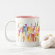 I purchased this as a gift for my oil painting instructor, who has come close to dipping her brush in her coffee cup numerous times. I customized the interior of the cup by making it a blue to match one of the colors on the outside. Nice contrast. The name of my painting instructor and her business name fit well on the 11 oz cup at top and bottom w/o encroaching on the brush mark decoration.