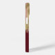 Whimsical Abstract Gold Red and Bronze Paint Strokes iPhone 14 Case with a white custom monogram template. For an added personal touch include your first and last name to the template. Give a thoughtful personalised iPhone case as a gift for Mother’s Day, birthday, graduation, etc. Personalised Monogram Initial Letter iPhone Cover with geometric elements.