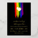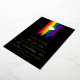 Charming lgbt wedding invitation with rainbow pride flag drawn with messy strokes and adorned with a golden heart against a black background with gold foil text.