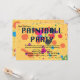 Recruit your team of friends for a paintball party they're sure to enjoy with this colourful design. The sunny yellow background with tiny diagonal lines has splatters of red, orange, blue, purple and green paint - a teen's delight!