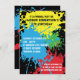 It's obvious before even reading the text on this invitation that the guests are invited to a wild paintball party. Colourful "splats" of paint decorate the black background of this invitation with text overlaying it. Add extra text on the reverse or delete it to leave the area blank. Great for a kid's birthday party, adult get-together or even a corporate paintball event. Available with matching products.