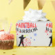 Fun Paintballing themed graphics for paintball fanatics with paint ball splatters, gun man, scope and bold text "Paintball Warrior" Ideal gift for those who love paintball shooting or even a prize for a paintball party