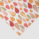 A repeating pattern of autumn leaves in shades of orange, coral, and dusty green. The leaves are all different shapes and sizes. The white background can be changed to whatever colour you like using the customise tool!