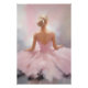 An abstract softly painted impressionist portrait of a ballerina from behind in a pink tulle costume.