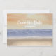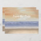 Stylish and elegantly painted sunset beach scene "save the date" card for an ocean view wedding.
