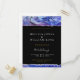 Black Art Wedding Invitation. Customisable white, grey and antique gold coloured text on black adorned with printed extracts of original fine artwork, painted in oils with brush and knife by living fine artist featuring shades of, blue, navy, ultramarine, purple, violet, and mauve. Postcard back with black and charcoal text, printed with your personalised name and sender address. Visit our store, Austen & Grace, to view the full wedding suite and our growing range of designer paper and homewares. Please contact us if you require extra matching products or any assistance via the contact button or email directly at contact@austenandgrace.com