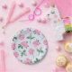 Painted Blue Pink and Green Rose Pattern Paper Plate