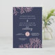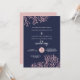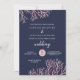 An elegant beach wedding invitation set featuring shimmery blush pink corals on a midnight blue background accented with modern calligraphy. Send me a message if you'd like the design in a different colour scheme. Original design & illustrations by Kitty Pie Prints.