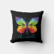 Pretty personalised throw pillow for your favourite butterfly lover. A simple, yet elegant, painted butterfly, in vivid hues of the rainbow. Front of pillow has large butterfly centred, with any name scripted below. Back of pillow has a design of scattered smaller painted butterflies.