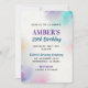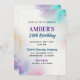 This painted canvas design is perfect for a modern birthday party. The design is colourful and ready to celebrate your favourite occasions, featuring purple, blue, pink and gold paint on a white canvas.