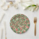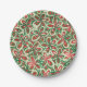 Painted Christmas Retro Floral Pattern Red Green Paper Plate
