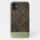 Trendy painted winter plaid pattern, personalised iPhone case. Cute watercolor plaid pattern in black, tan, red, green and silver. Features, template text space for name or phrase.