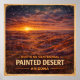 perience the vibrant colors and sprawling vistas of the Southwest with this Painted Desert Centennial poster. Commemorating the 100th anniversary of Route 66, this vintage-inspired artwork captures the layered, multi-hued badlands of Arizona under a spectacular sunset and starlit sky. The design is framed with a weathered, aged-paper border and bold classic typography that pays tribute to one of the most mesmerizing natural landscapes along the Mother Road.