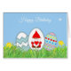 Painted Easter eggs and cute Birthday gnome Birthday Card. Text can be personalised.