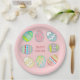 Painted Easter Eggs on Light Pink Paper Plates. Text ready to be personalised for Easter, holidays, Birthday and more.