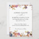 Featuring a modern, luxury script font for key phrases, graphics have been added that read "Save the Date" and "and". Details are flanked with loose, artistic watercolor flowers in shades of purple and orange. Use the template fields to add your personal details. // 137 //