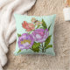 Pretty floral throw pillow for anyone who loves flowers, gardens, or springtime! Painted poppies and butterflies (in shades of pink, purple, and gold) on a pale mint pillow. Delicate flowers that add a pretty pop of springtime colour to any room in your house.