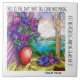 A bright floral tile of painted flowers (vase of purple flowers in window, and sunrise over the water), with verse from Psalm 118:24