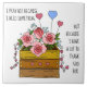 A bright floral tile of painted flowers (pink roses) in a wooden crate, with quote about prayerful thanks.