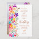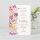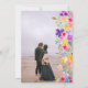 A modern, delicate hand painted garden wild flowers in bright hues, pink, red, blue, yellow and green, with an elegant brush script font to celebrate your summer outdoor wedding in style. Add your photo at the back!