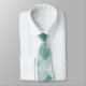 A modern tie featuring a painted abstract geometric design in pale and sage green.