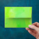 An envelope with a green painted abstract design on both the outside and inside. Nice in itself or can be further customised. Enter your name and address for the return address or clear this if you would prefer the envelope blank.