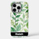 This premium mobile device protector features an artistic painted pattern of verdant foliage. Various shades of green leaves and delicate stems create a fresh, natural look on a crisp white background. The design features visible brushstroke texture, evoking a hand-painted botanical aesthetic. Personalise this unique smartphone accessory with a name like "Elizabeth"; you can easily remove the name and any other elements you don't like from within the design tool, crafting your perfect bespoke mobile phone protector.