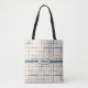 A roughly painted grid in pastel colours of teal, peach, and grey-green on a dark cream background creates a casual tote bag that you will love!