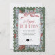 This business holiday card combines festive elegance with a personal touch, making it an ideal way for companies to express their gratitude to clients, partners, and employees. The front of the card features a warm "Happy Holidays" greeting, along with a short message of appreciation and the company logo, all framed by a rich green border adorned with hand-painted pine needles and vibrant red berries. A striped red and white bow at the top adds a cheerful and classic holiday touch, creating a card that feels both professional and heartfelt.