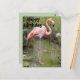 Painted Pink Flamingo In Pond, Birthday Postcard