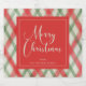 Traditional Christmas painted red, green and beige plaid pattern, bottle labels. Design features, Merry Christmas script and template text line for your name.