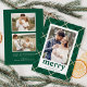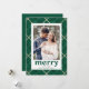 Spread holiday cheer to family and friends with our Painted Plaid holiday photo card. The modern holiday card features your favourite vertical photo framed in white with a background of painted green plaid with faux gold foil lines. The word "merry" is displayed in a green retro-inspired font with your greeting and name below. The modern holiday card reverses to feature two additional photos and your custom message in white with a dark green background. Designed to coordinate with our Painted Plaid holiday collection.