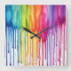 Painted Rainbow Watercolour Paint Drips Abstract Square Wall Clock