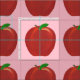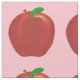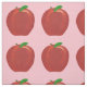 Painting of a whole ripe, red apple, with a green leaf, is tiled as a pattern on custom fabric. The background colour of pink can be customised.