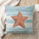 Painted Starfish on Blue Watercolor Stripes Cushion