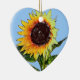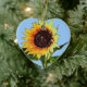 Original painting of a yellow pretty sunflower with green leaves on a blue background. Easily change the blue background to another colour of your choice. Just click on edit and then click on background to change it. Shown is the ceramic heart shaped ornament. The perfect ornament for the nature lover, gardener, florist, or just anyone who loves sunflowers!