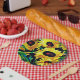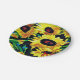 This custom paper plate features painted sunflowers in bold visual acrylic paint.