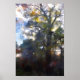 Trees in a forest abstraction through colourful painted glass. Surreal landscape.