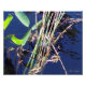 A painted turtle suns itself on the stalks of reeds.