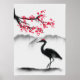 Traditional Japanese Hand Painted Wall Art with Sakura and Heron