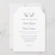 Painted watercolour olive branch foliage wedding invitation. On trend hand made look with watercolor foliage illustration elements. Olive branch leaves, script text, monogram/initials.