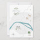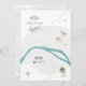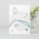 Painted watercolour wedding map invitation. On trend hand made look with watercolor foliage illustration elements. Olive branch leaves, deer, streams, lakes, leaves, rivers, roads, farms, barns, cottages, compass.