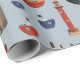 A rustic lighthouses and boats wrapping paper featuring painted wooden boats and lighthouses on a dusty blue background.