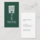 A modern, minimal business card with a dark green background on the front with a white paintbrush and typography. The reverse of the card has a plain white background and you can easily customize the dark green and dark gray typography with your name, job title and contact details. A simple business card perfect for the painting and decorating industry.