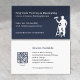 A modern business card designed for painters and decorators. With a navy blue background on the front and a white silhouette of a painter on steps holding a paint roller, easily customize the white typography with your name and contact details. The reverse of the card has a plain white background and space to list your services, along with a QR code - perfect for linking to reviews, your portfolio or website.