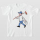 This design is a good one for any painter as it is of a painter on his way to work. This painter is carrying a tin of paint and has a paint roller over one shoulder. He is wearing a cap and looks like he is off to a job. This painter looks great on this girls t-shirt. Perfect for yourself or as a gift